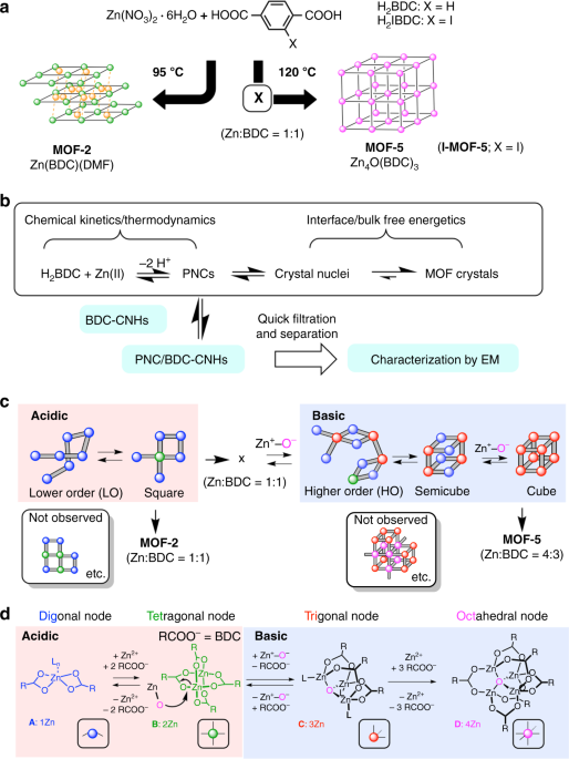 それぞれのMOFが生成する温度条件における反応混合物に分子釣り針付きカーボンナノチューブを加えて反応を行ったあと、急冷したのち濾過して反応を停止することで、反応進行の各段階で生じる一連の中間体を釣り針上に捕捉した。そして、取り出したカーボンナノチューブを電子顕微鏡に入れ真空中で観察することで、チューブの先端に結合したMOF形成の反応中間体として生成する1―2ナノメートルサイズの集合体(クラスター)を原子分解能で捉えることに成功した。 緩く結合したクラスターは電子顕微鏡動画撮影の実時間スケールで自発的に回転するため試料を傾けることなくさまざまな角度から観察でき、その三次元構造を原子レベルで明らかにすることができた。MOFの形成過程において、その構成要素である亜鉛イオンとテレフタル酸の数およびつながり方が異なる無数の中間体が生成するが、そのような構造未知の分子ひとつを取り出して構造を決められたことは分子構造解析において重大な意義がある。