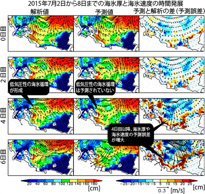 TOPAZ4は、ノルウェーのナンセン環境リモートセンシング研究センターで開発された海氷・海洋結合データ同化システムである。現場や衛星で観測された海面水温や海氷密接度などを海氷・海洋結合モデルに同化することによって、現実的な海氷・海洋の解析値と予測値が得られる。詳細は「北極海航路上の海氷厚分布を高精度に予測できる時間スケールを特定~北極低気圧の予測精度に大きく依存~」を参照のこと。