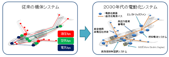 【航空機・エンジン電動化システムのイメージ図】
