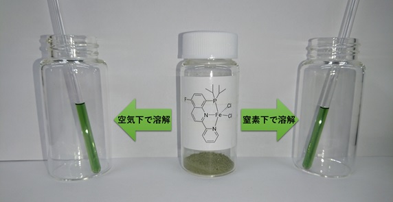 図2 鉄錯体触媒を空気下と不活性ガス(窒素)下で溶解させた様子