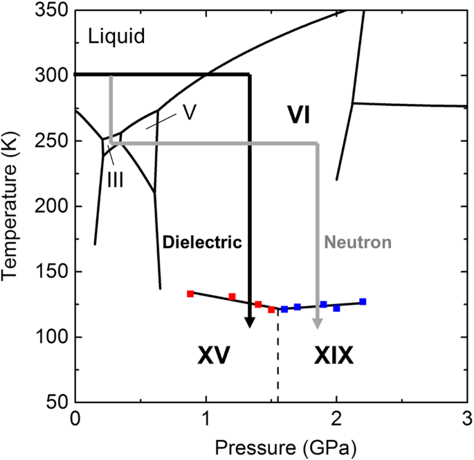 今回、東京大学物性研究所 山根崚特任研究員、東京大学大学院理学系研究科 小松一生准教授、鍵裕之教授らの研究グループは物性研究所、総合科学研究機構 中性子科学センターおよび日本原子力研究開発機構 J-PARCセンターとの共同研究で、低温高圧下における誘電率測定および中性子回折実験により、新たな氷の多形である氷XIXを発見しました。この氷は、常温の水を加圧して最初に出現する氷VIを-150 ℃程度まで冷やすことで得られます(図1)。