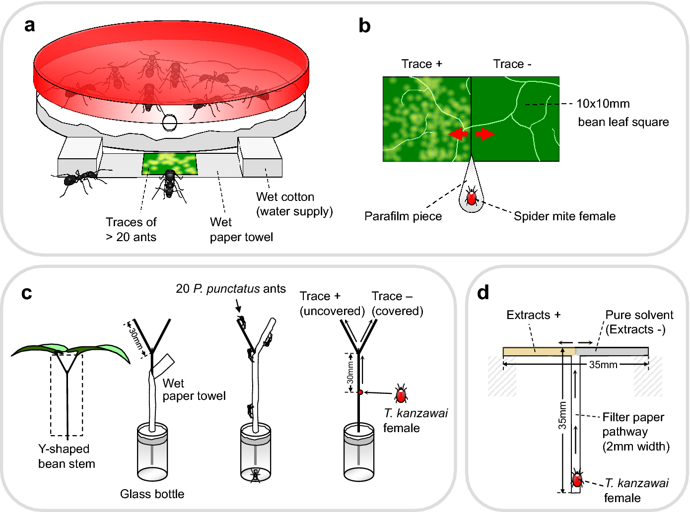 Shuichi Yano, Mayu Konishi, Toshiharu Akino (2022). Avoidance of ant chemical traces by spider mites and its interpretation. Experimental and Applied Acarology.