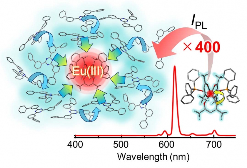 発光性希土類金属錯体は色鮮やかな発光を示すことから、色再現度の高いディスプレイや視認性の高いセンサーなどを実現するための発光材料として期待されています。多くの実用的な発光デバイスは薄膜状であることから、その実現のためには薄膜中における希土類錯体の高効率・強発光を達成することが重要となります。しかし、このような状態における希土類錯体の発光機構が未解明であることが開発のボトルネックとなっていました。