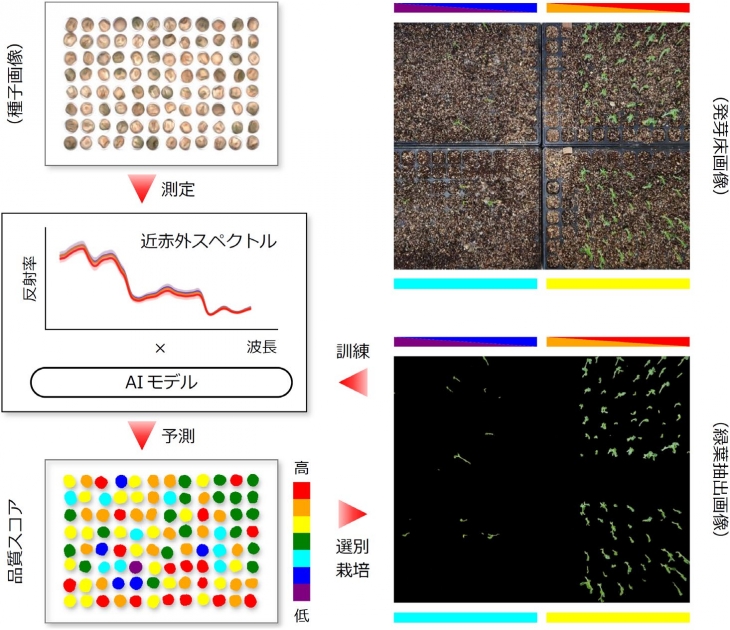 - 近赤外分光法とAIモデルを併用し、種子の適格率を「あと1%」まで改善できる選別技術を開発しました。