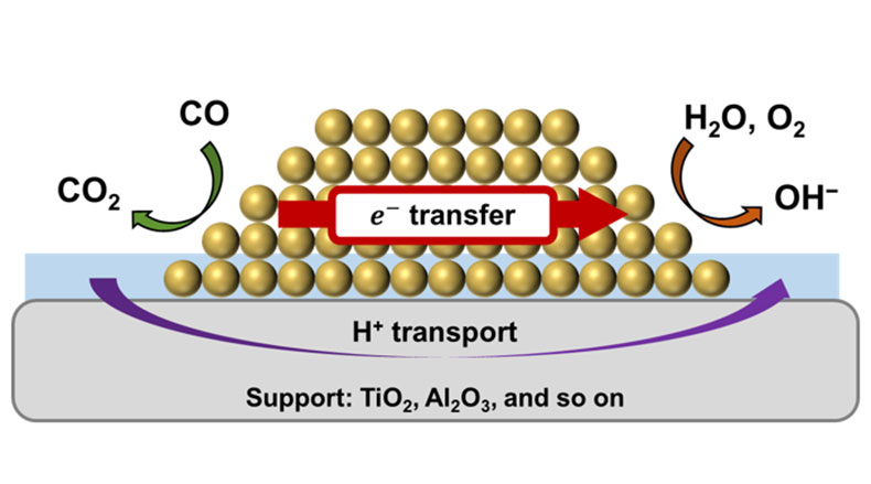 図 水中における金触媒による常温CO酸化では、CO酸化と酸素還元が、電池を短絡したような状態をつくり、混成電位によって駆動される経路がある。