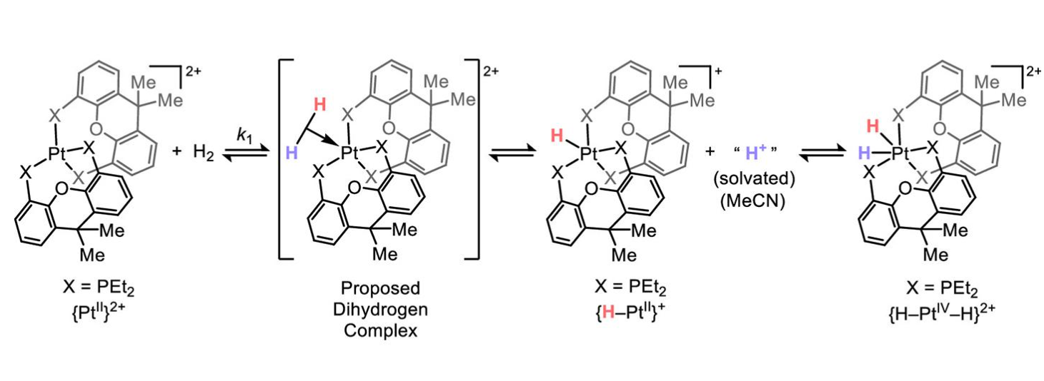 ヘテロリシスとプロトン性リバウンドによる{MII}2+(M = Pd, Pt)へのH2の正味の酸化的付加 Net Oxidative Addition of H2 to {MII}2+ (M = Pd, Pt) by Heterolysis and Protic Rebound